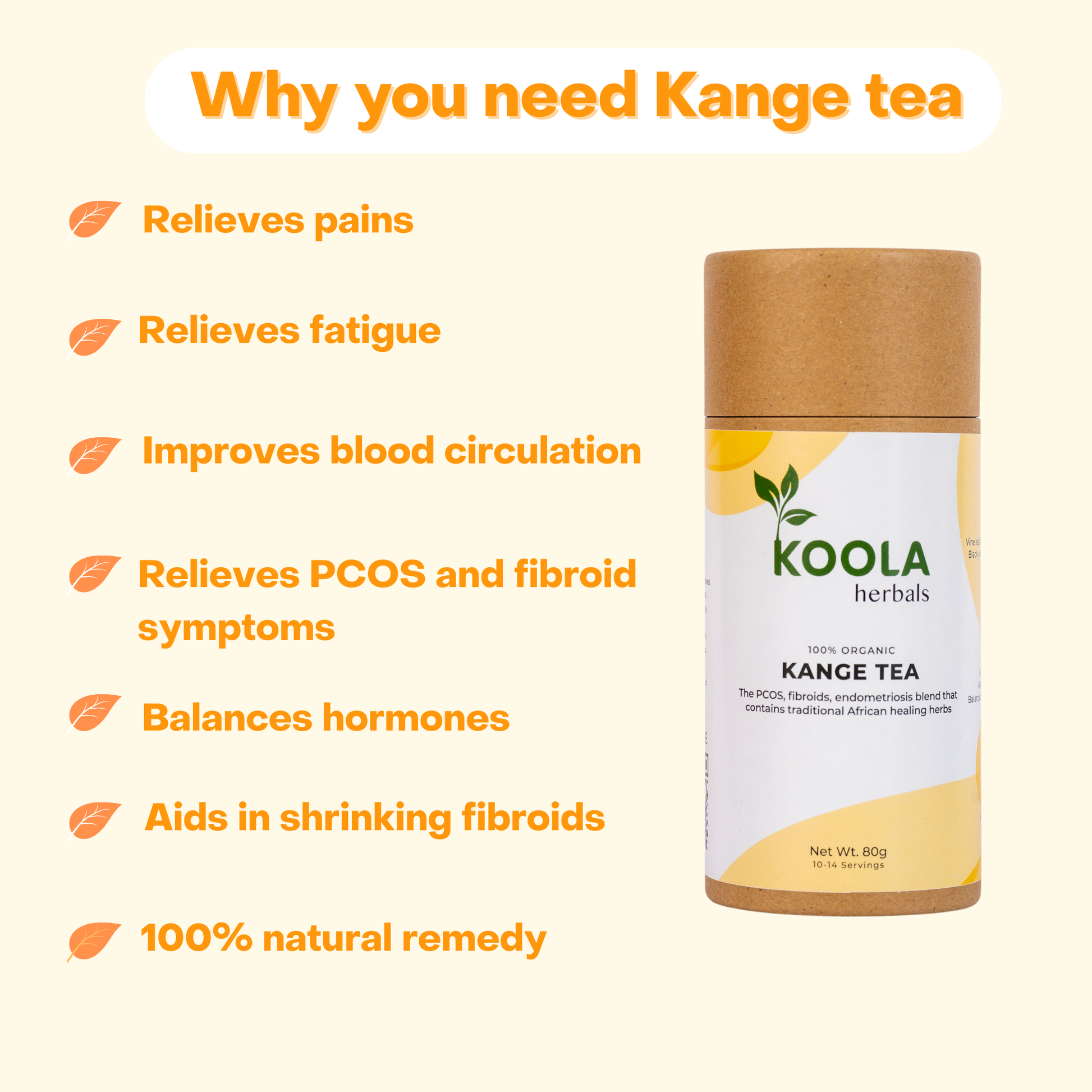 This tea makes me fatigue free, and my periods are slowly getting on track. I feel energetic and am always in a great mood. Thx Koola herbals